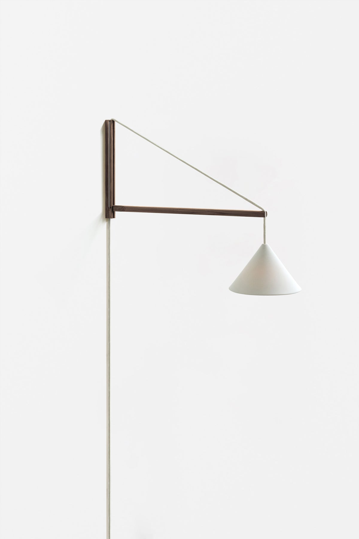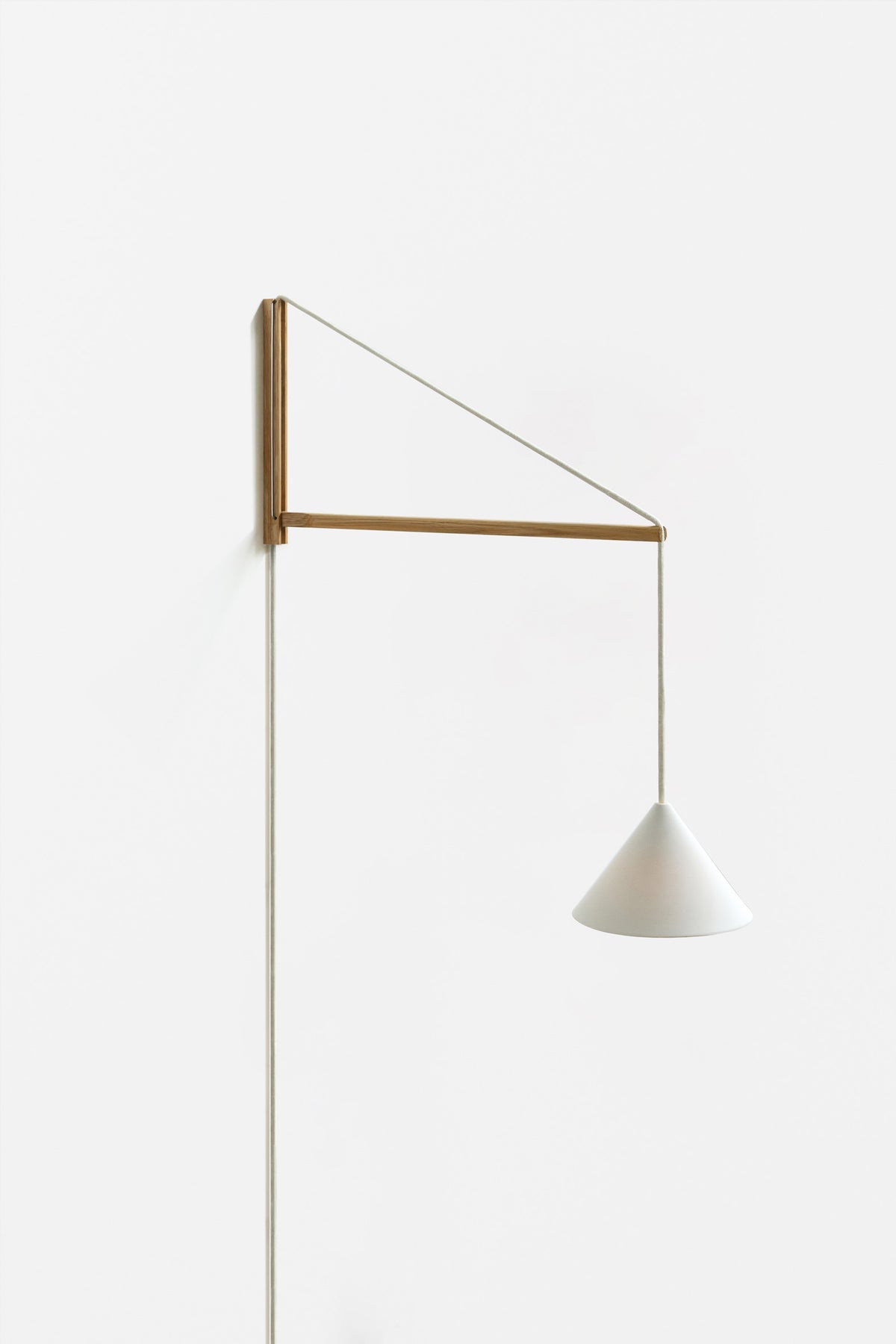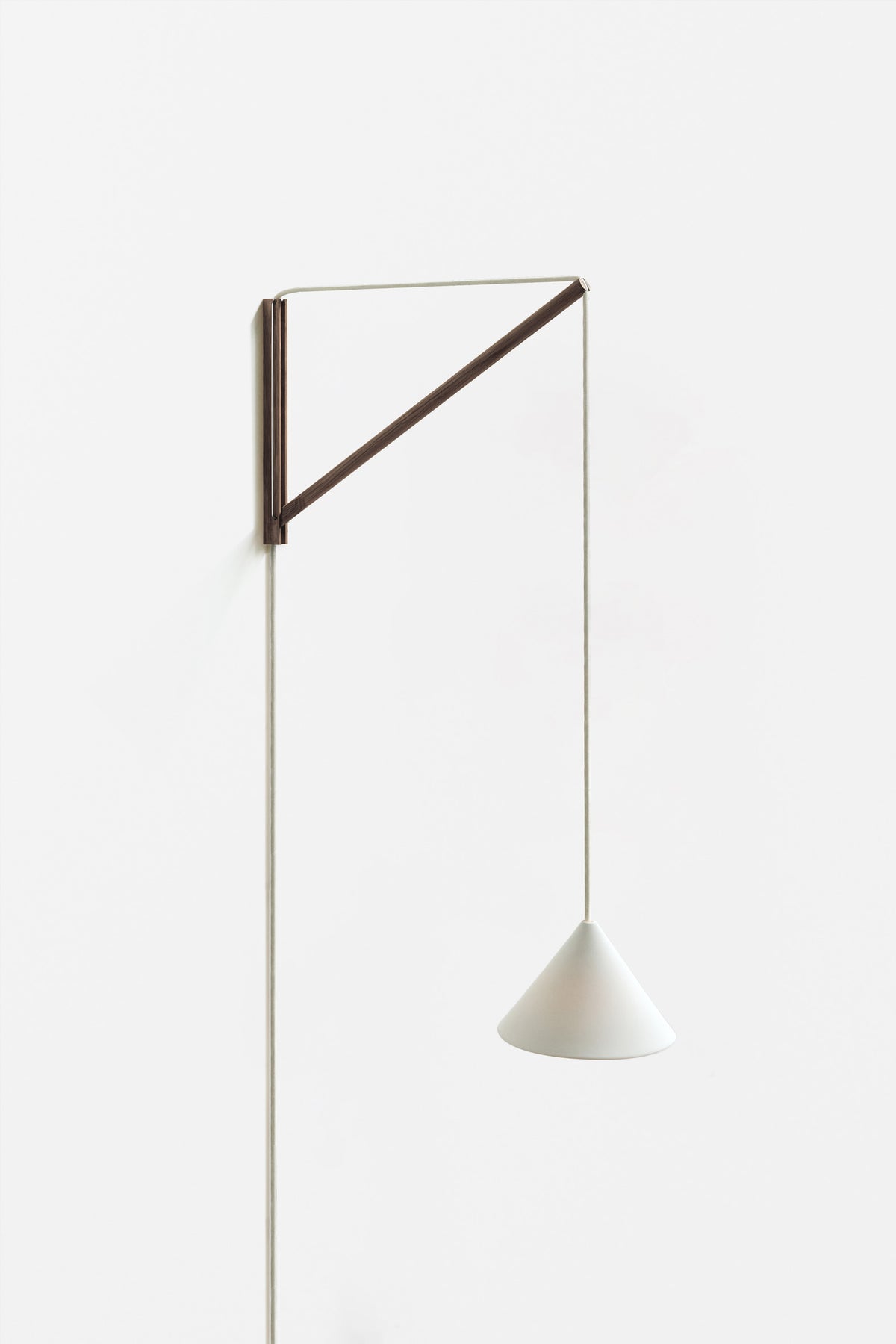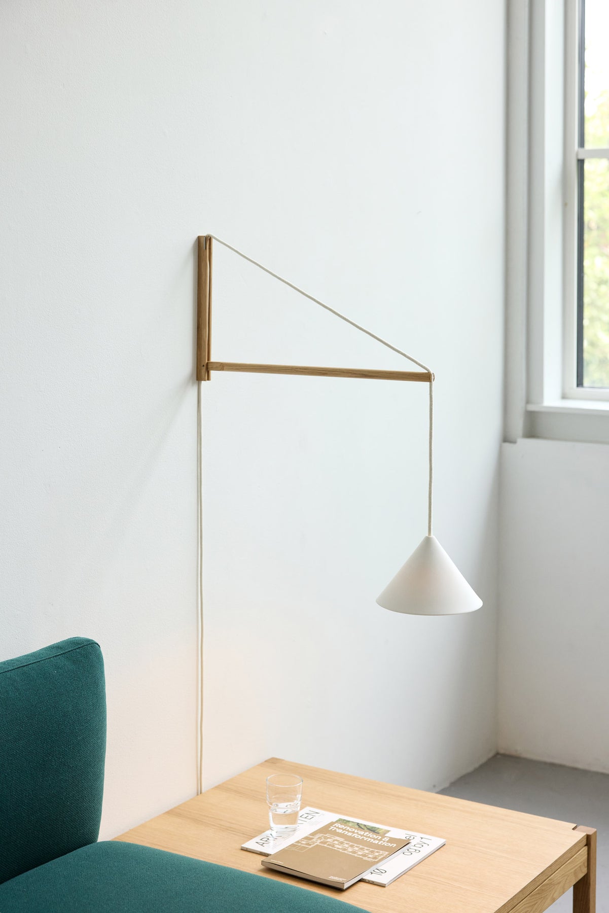 Simple to mount, with just four parts: bracket, wire, arm, and shade. Mount it quickly, and adjust it effortlessly. Suspended Wall Lamp is designed to adapt to how you live without ever getting in the way.