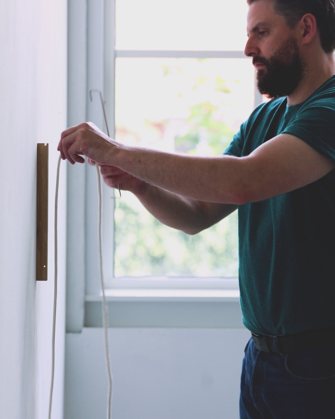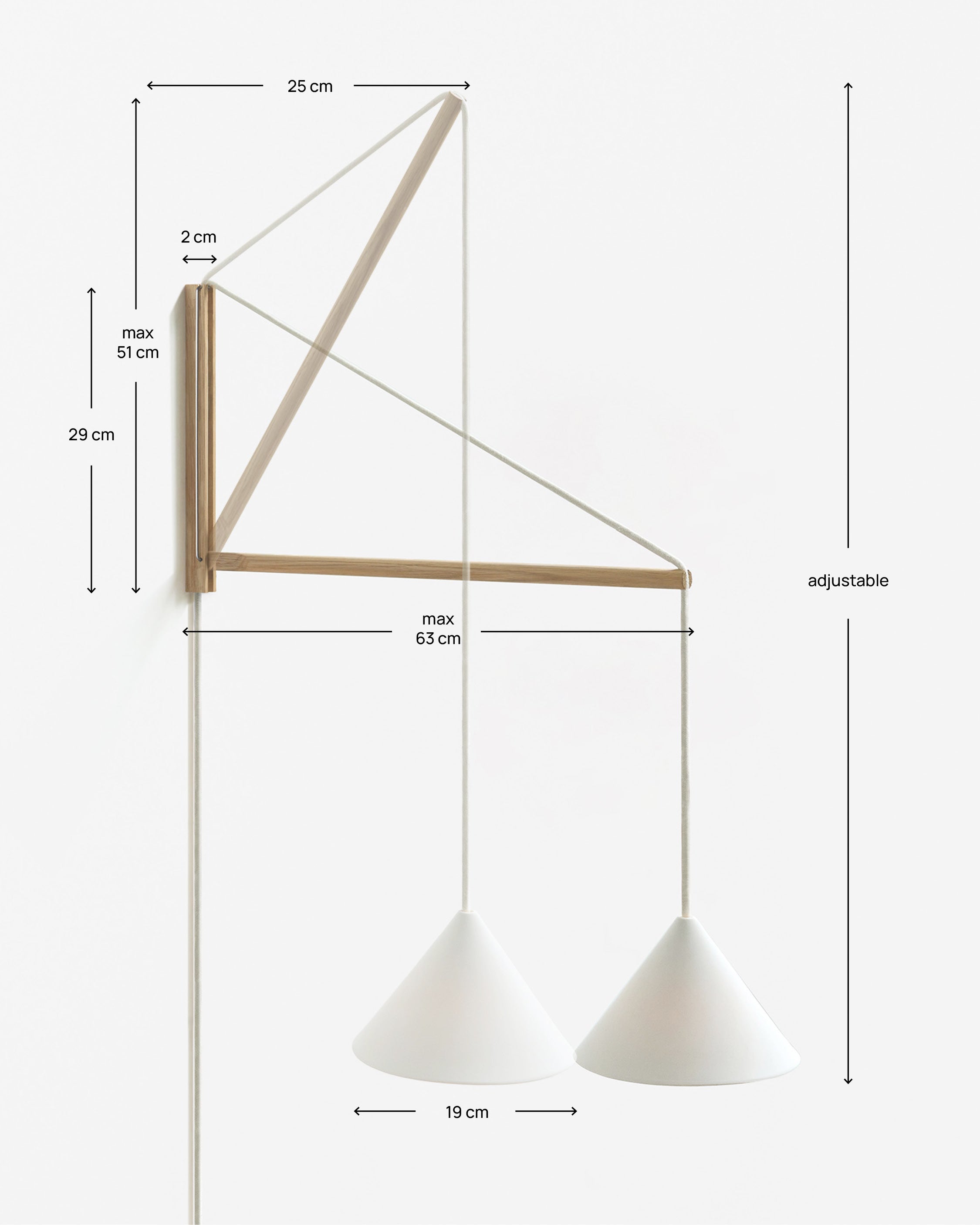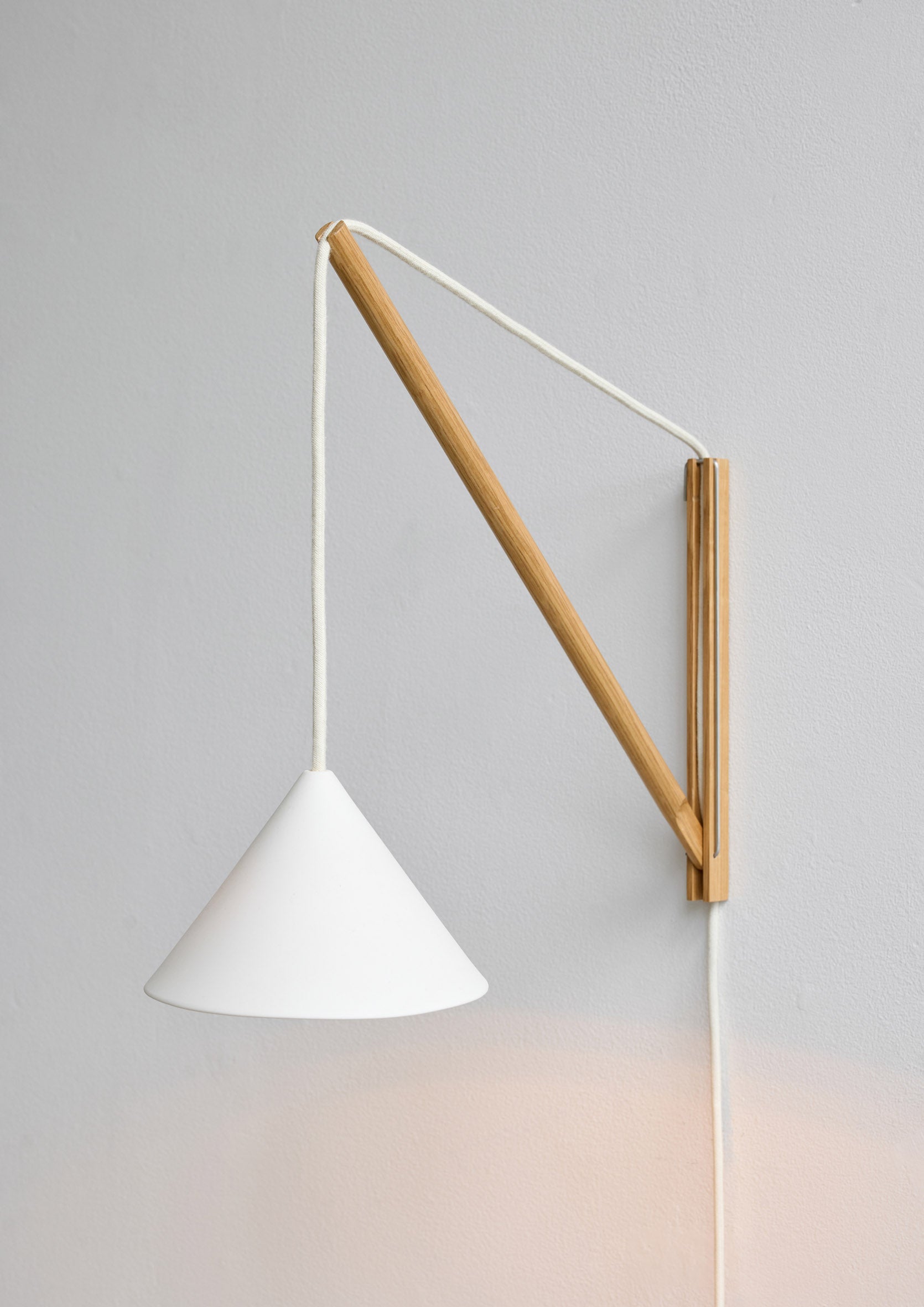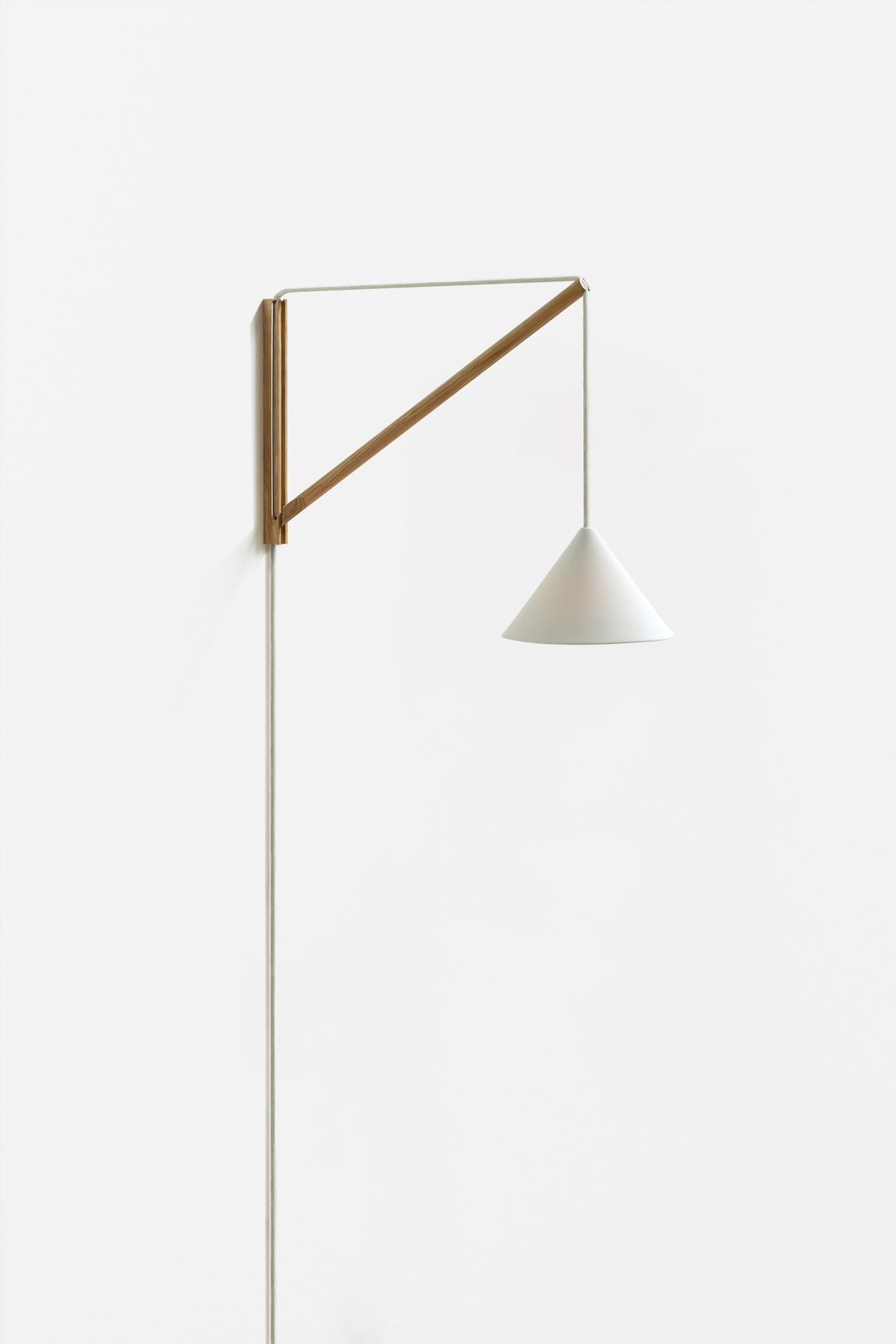 Simple to mount, with just four parts: bracket, wire, arm, and shade. Mount it quickly, and adjust it effortlessly. Suspended Wall Lamp is designed to adapt to how you live without ever getting in the way.
