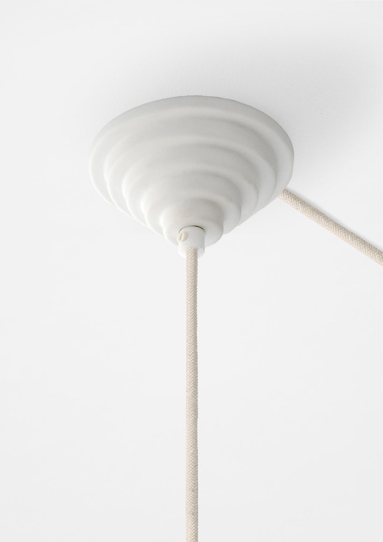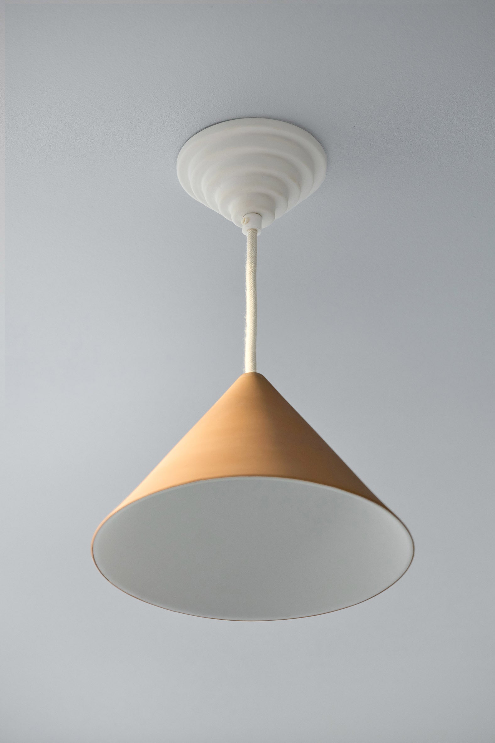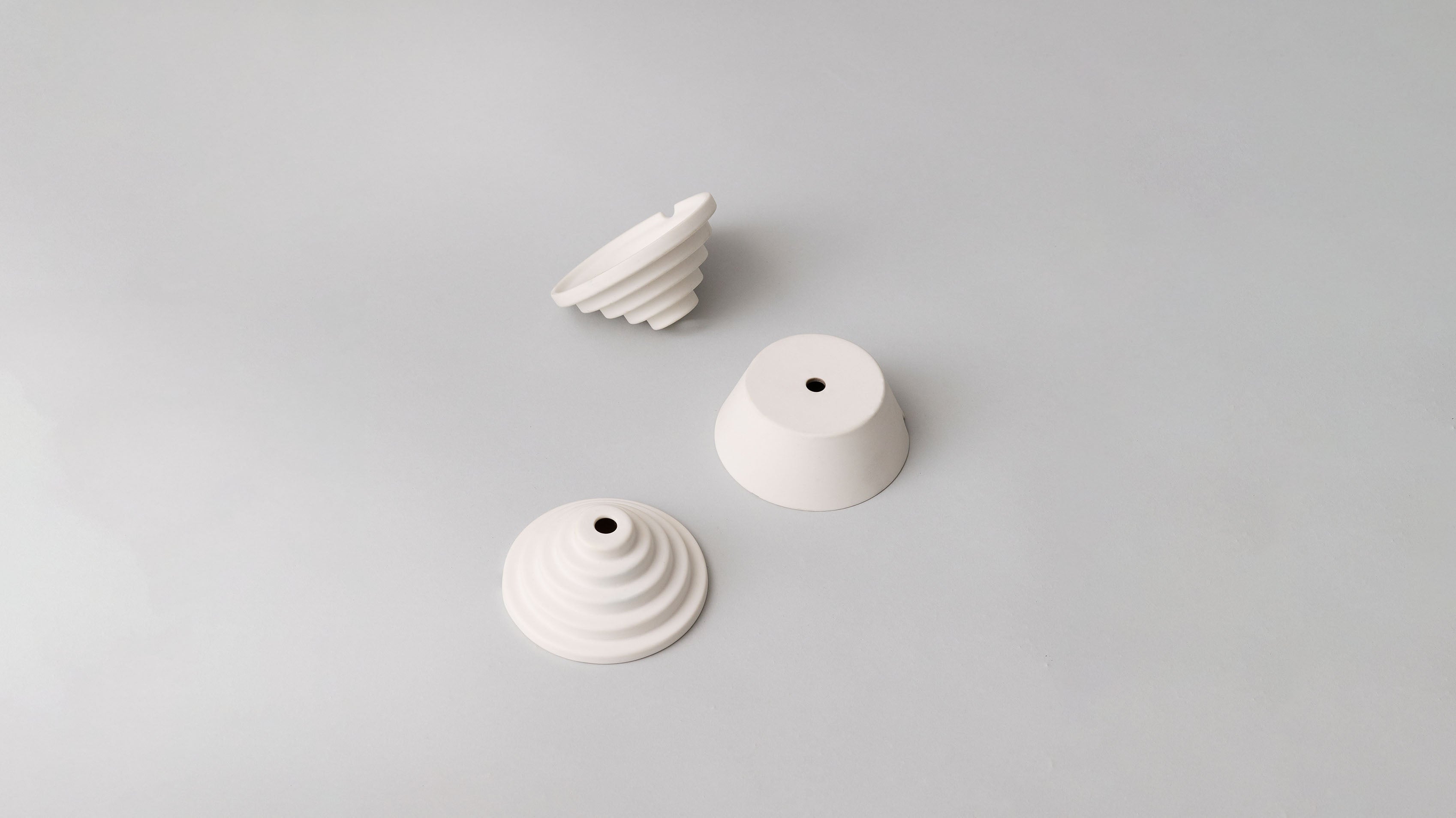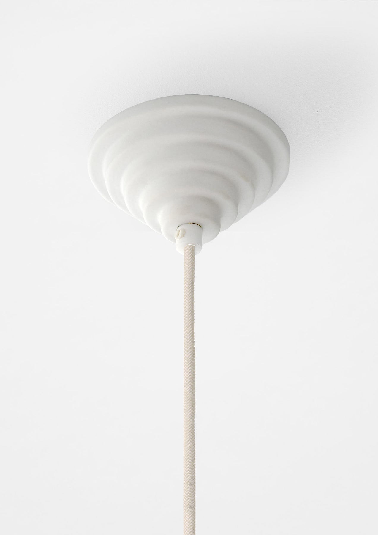 Each piece is cast and fired individually, resulting in subtle variations that reflect the character of the material. Ceramic Ceiling Rose is available in two forms, both designed to sit neatly against the ceiling and provide a refined, long-lasting solution around the cable entry.