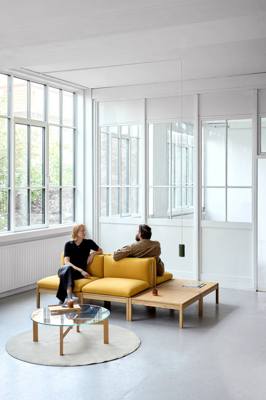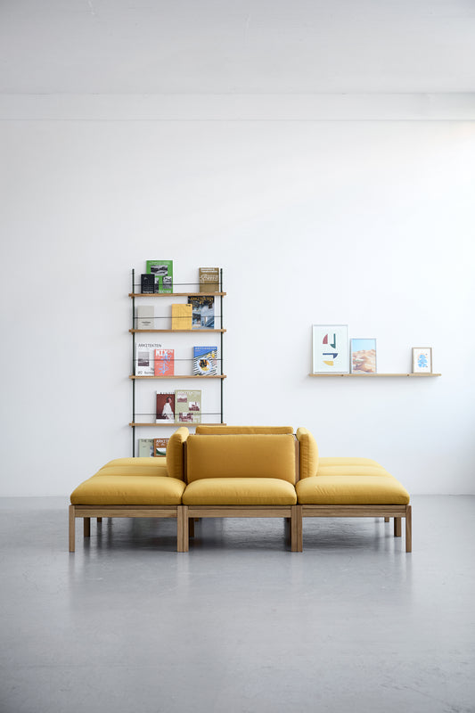 From these four simple modules any manner of sofa configuration can be achieved, from a simple two-seater sofa up to complex arrangements that change direction or help define a space.